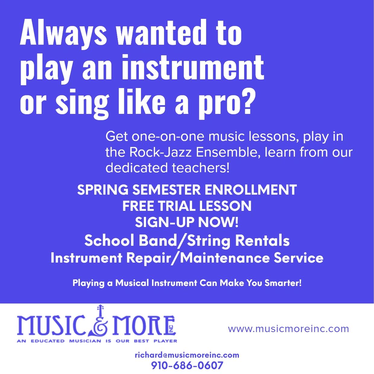 Music & More, Inc. Ogden Business Park, 7215 Ogden Business Lane, #107 Wilmington, NC 28411 US
